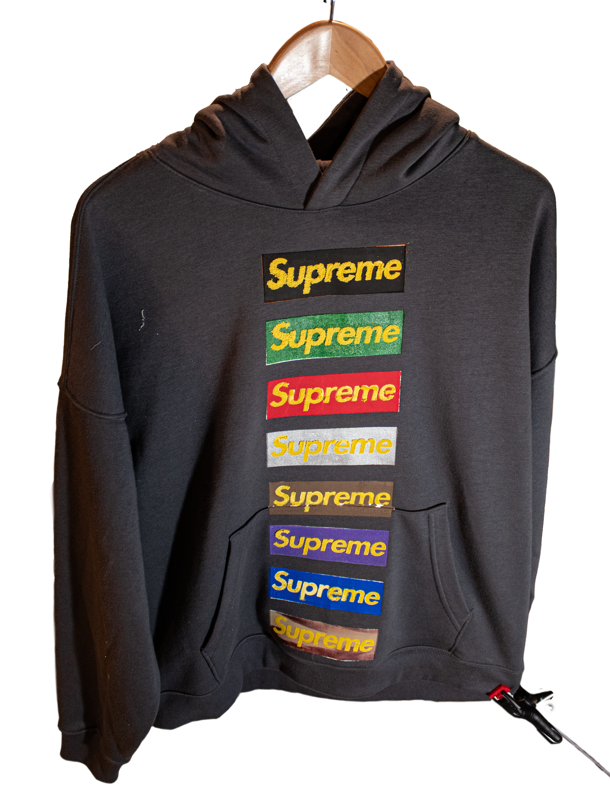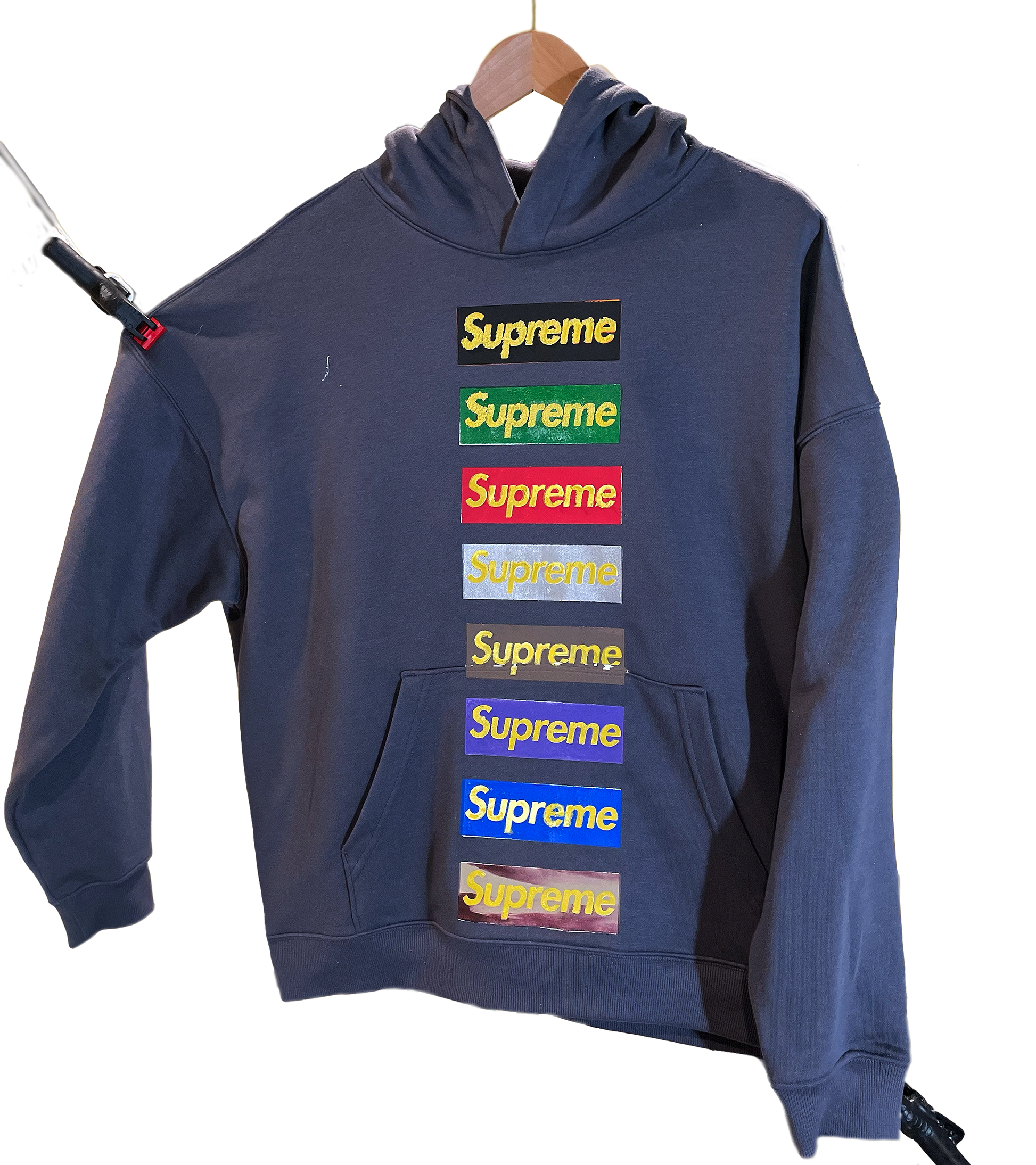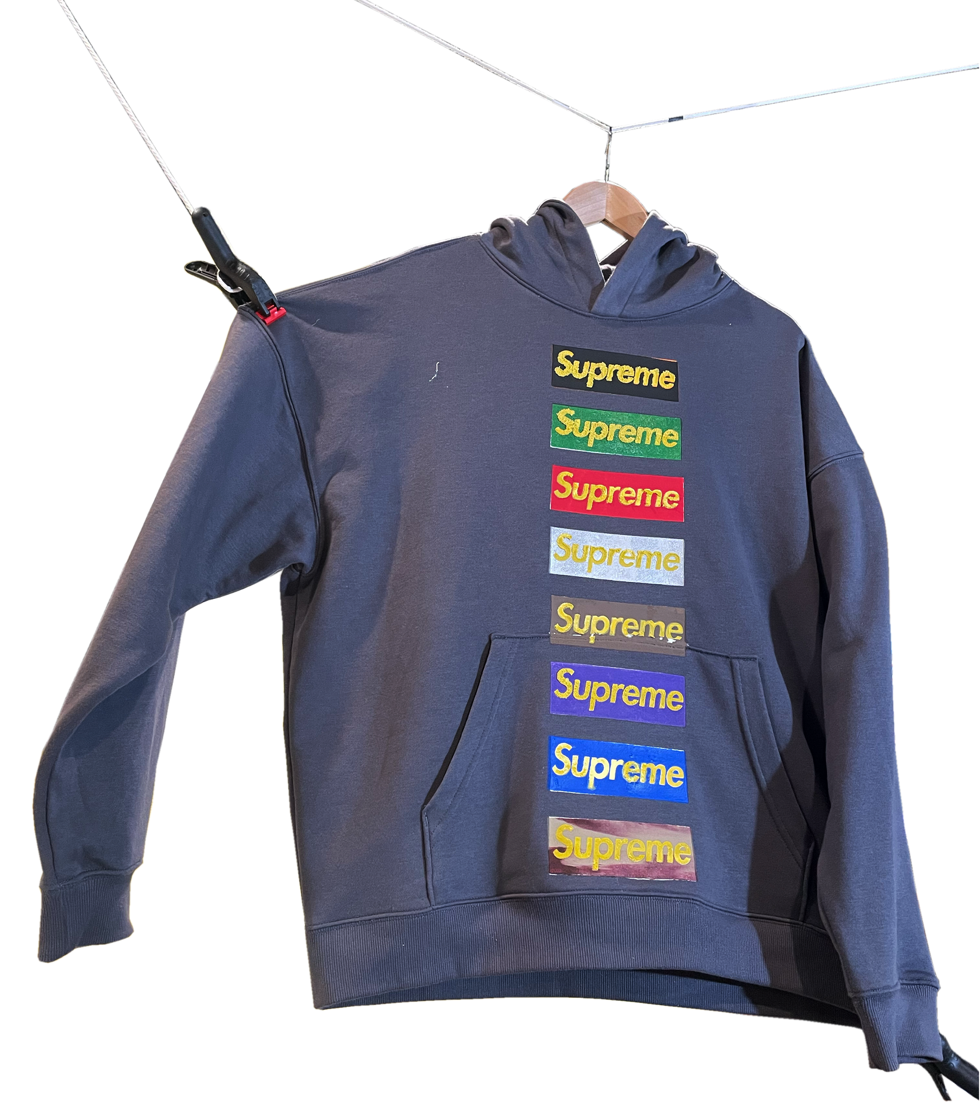 Hand printed vintage hooded sweatshirt. Multi bootleg Supreme box logo print down the front. Super heavyweight high quality hoodie. Comes with a graysonfuckingsucks sticker and discount code.