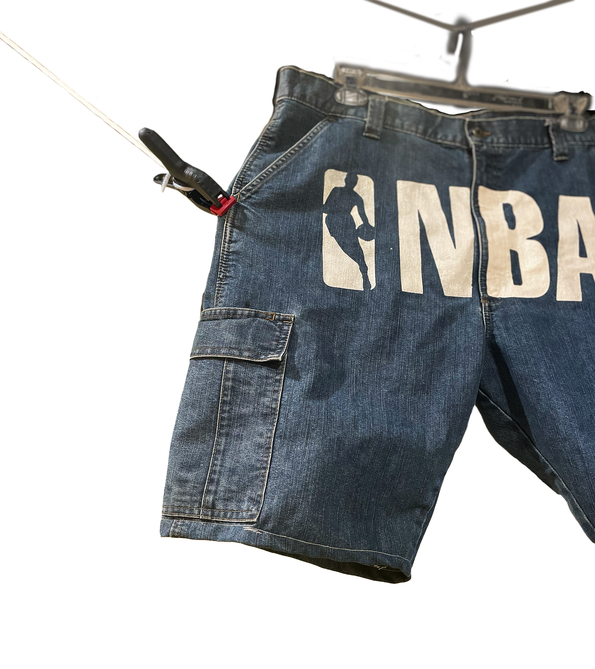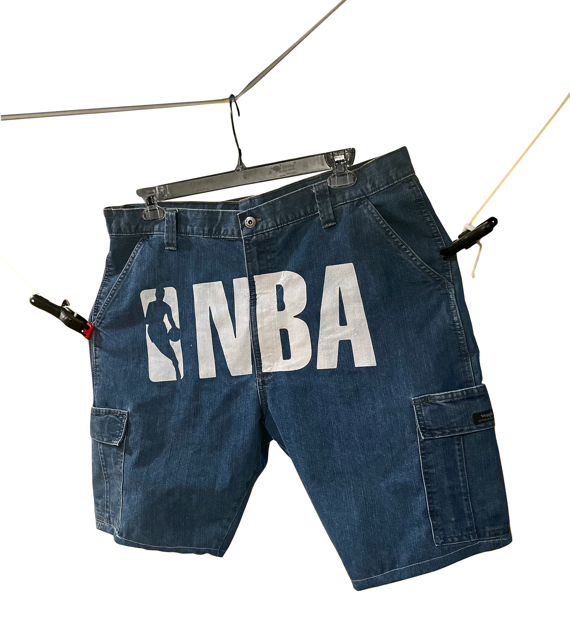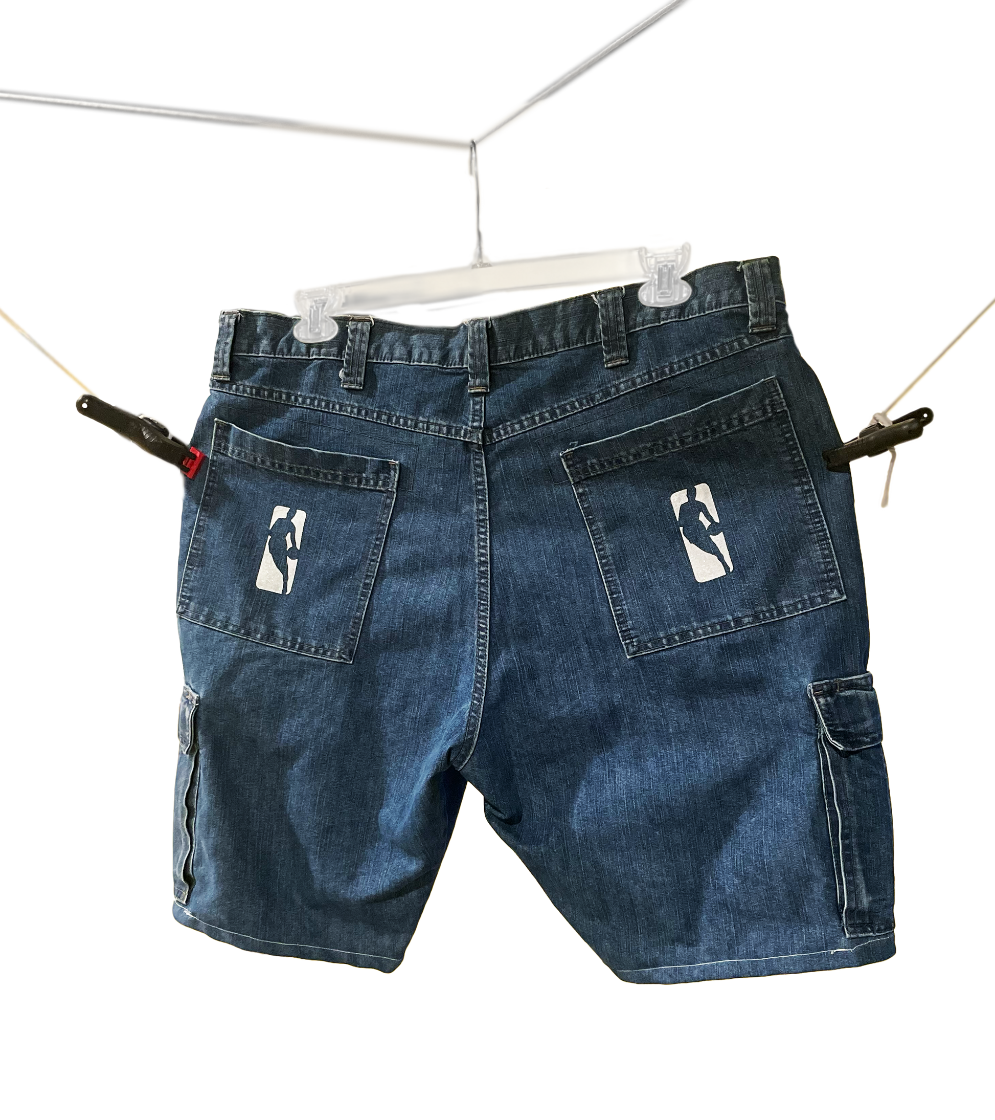 Hand printed vintage denim cargo jorts. Jeans may vary slightly in color due to sourcing vintage denim. Only five ever made. High quality denim. Comes with a graysonfuckingsucks sticker and discount code.